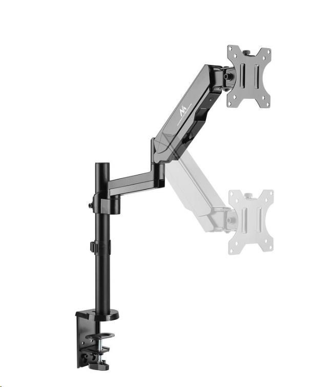Full motion držák monitoru Fiber Mounts M7C75 Plně nastavitelný stolní držák na monitory 13-32", VESA 75x75 a 100x100, nosnost 8kg Nabízíme velmi pěkný designový monitorový držák vynikající konstrukce, který podporuje plnou nastavitelnost polohy obrazovky: dvojí nastavení výšky (na nosníku, ramenem s plynovým pístem), nastavení vzdálenosti monitoru od nosníku, otáčení na obě strany bez omezení, velký náklon jak nahoru tak dole. Flexibilitu zvyšují i dodávané 2 typy uchycení na stolovou desku - na okraj stolu nebo do prostoru stolu přes průchodku. Držák monitoru Fiber Mounts M7C75 uživatele uchvátí jak opravdu krásným vzhledem, tak vynikajícím provedením a skvělou funkčností. Monitorový držák flexibilní polohovatelný Fiber Mounts M7C75 vás mile překvapí svou vynikající kvalitou, pěkným vzhledem a vynikající nastavitelností Technické údaje: nosnost 8kg podporuje VESA standardy 75x75 a 100x100 nastavení výšky po celé délce nosníku 363mm nastavení výšky ramenem s pístem 150mm celkové nastavení výšky 0-600mm otáčení do stran +/- 360° náklon +/- 35° nastavení vzdálenosti od nosníku 44-534mm funkce PIVOT - otočení monitoru na šířku nebo na výšku korekce roviny monitoru systém pro vedení kabeláže 2 úchyty na stolovou desku: na okraj stolu nebo do prostoru stolové desky přes průchodku full motion nastavení polohy vynikající konstrukce TOP kvality krásný moderní design velmi odolná a stabilní konstrukce materiál ocel a hliník barevné provedení černé záruka 3 roky.