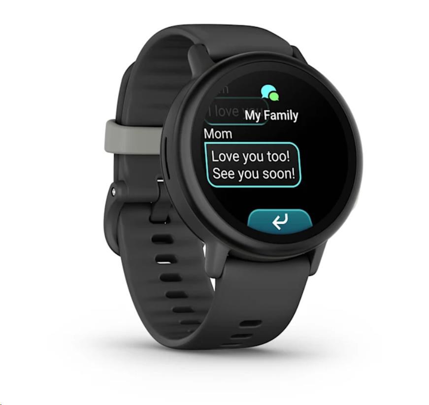 Aplikaci Garmin Jr. můžete používat k zasílání textových zpráv dětem do hodinek Bounce 2. Děti si mohou vytvářet vlastní zprávy a odpovídat kontaktům schváleným rodiči nebo reagovat na zprávy v rodinné skupině.