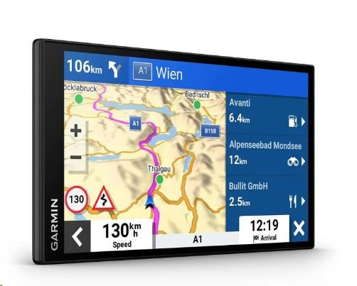 Hlasový asistent v navigaci Garmin DriveSmart reaguje na vyslovené požadavky a navede vás tam, kam potřebujete (asistent není k dispozici v českém jazyce). (Hlasový asistent je k dispozici v angličtině, francouzštině, němčině, italštině, španělštině, dánštině, švédštině a nizozemštině).