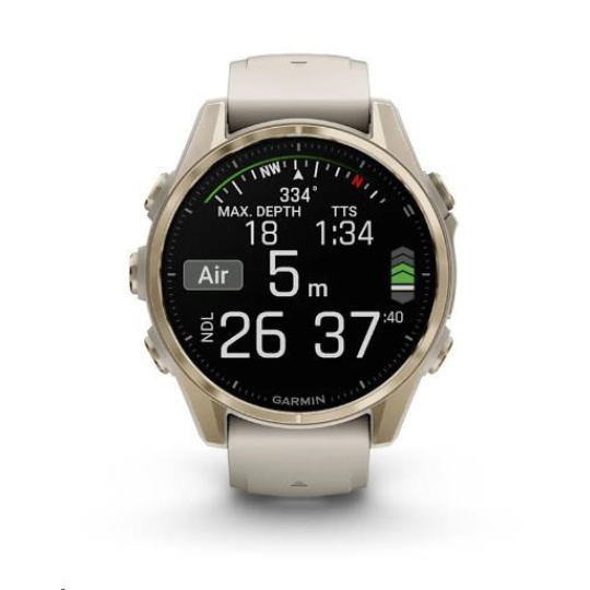 Garmin fenix® 8 – 43 mm, AMOLED, Sapphire, Soft Gold / Fog grey se silikonovým řemínkem, EU