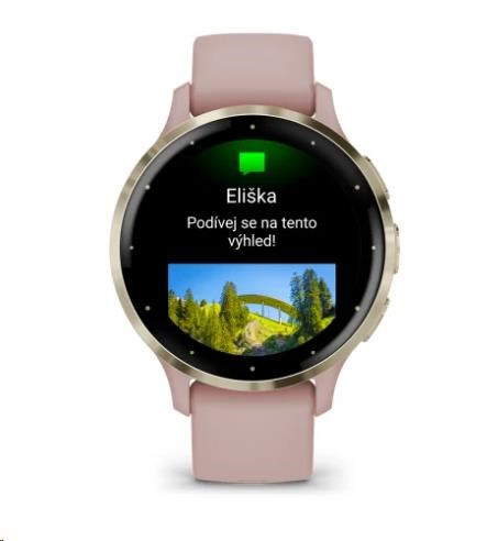 Garmin Venu® 3S, Nerezová luneta Soft Gold, pouzdro Dust Rose, silikonový řemínek