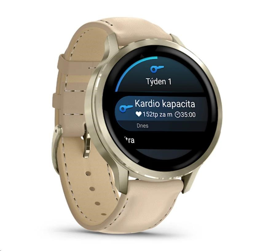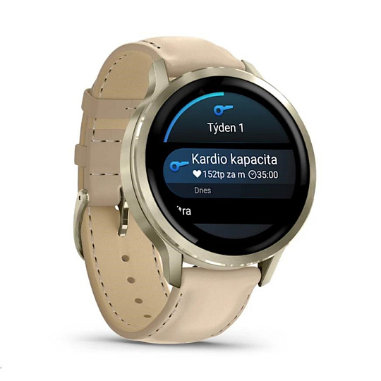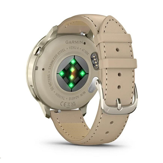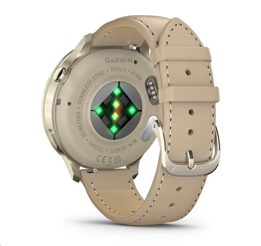 Garmin Venu 4 (41 mm) Zlaté / Bílý silikonový řemínek a Light Sand kožený řemínek, EU