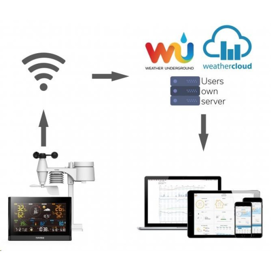 Hlavní jednotka je osazena vysokorychlostními procesory, které analyzují naměřené hodnoty meteorologických veličin a ty pomocí místní Wi-Fi sítě v reálném čase nahrává na zvolený server/servery Weather Underground a Weathercloud, případně na vlastní server uživatele, nebo na server PocasiMeteo.cz. Zasílání dat je možné na všechny servery současně.