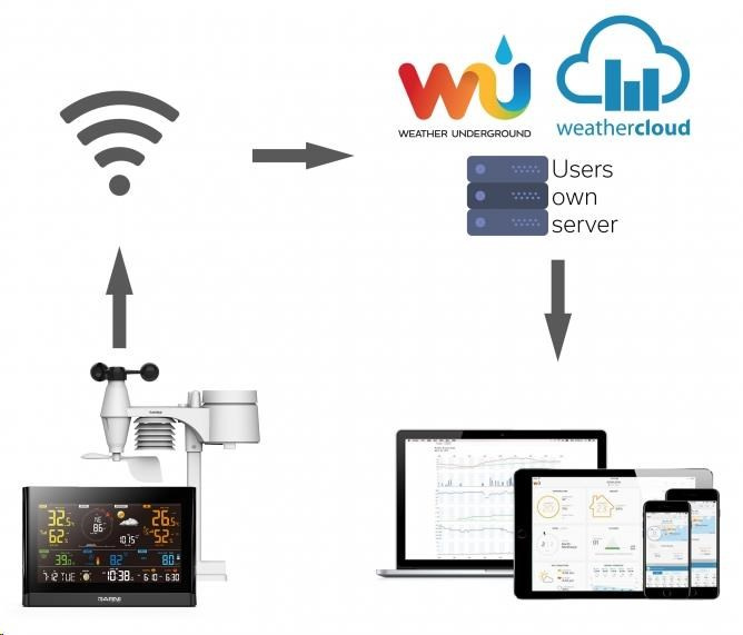 Hlavní jednotka je osazena vysokorychlostními procesory, které analyzují naměřené hodnoty meteorologických veličin a ty pomocí místní Wi-Fi sítě v reálném čase nahrává na zvolený server/servery Weather Underground a Weathercloud, případně na vlastní server uživatele, nebo na server PocasiMeteo.cz. Zasílání dat je možné na všechny servery současně.