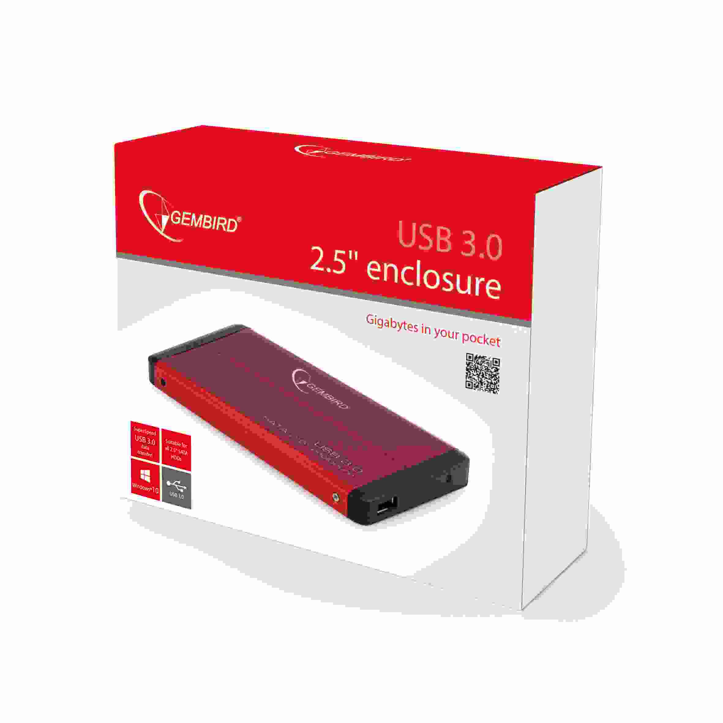 GEMBIRD externí box pro 2.5" zařízení, USB 3.0, SATA, červený