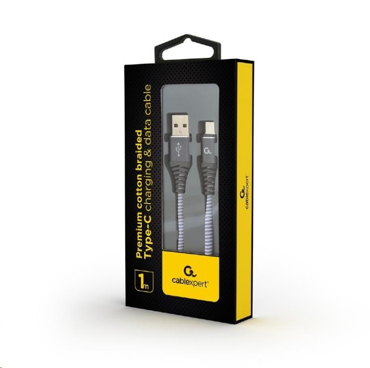 GEMBIRD Kabel USB 2.0 AM na Type-C kabel (AM/CM), 1m, opletený, šedo-bílý, blister, PREMIUM QUALITY