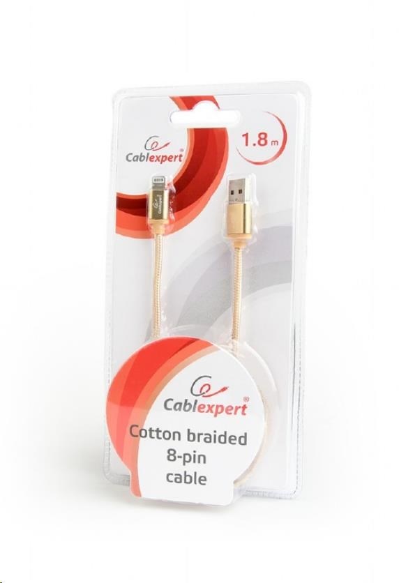 GEMBIRD Kabel USB 2.0 Lightning (IP5 a vyšší) nabíjecí a synchronizační kabel, opletený, 1,8m, zlatý, blister