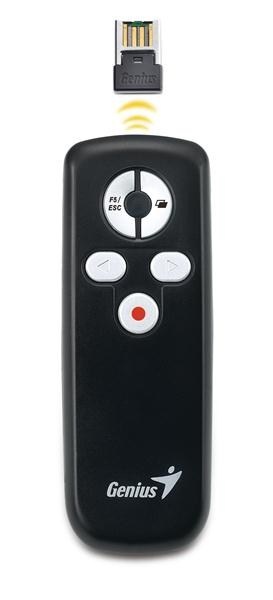 Zcela nová pomůcka Media Pointer 100 od firmy Genius je nejlepší nástroj pro použití při prezentacích. Pokročilá 2,4 GHz bezdrátová technologie poskytuje pracovní rozsah až 10 metrů bez interference. Je to užitečný nástroj pro schůzky, projevy či školení na cestách.