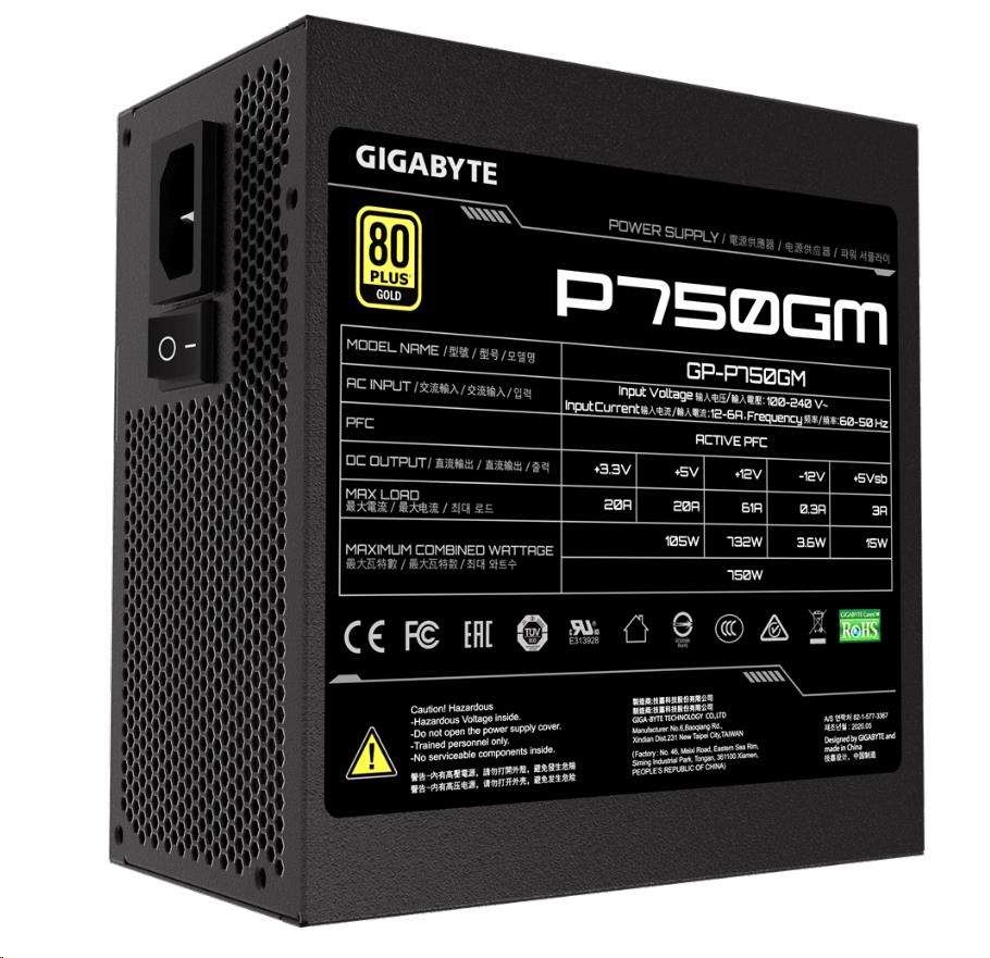 GIGABYTE zdroj P750GM, 750W, 80plus gold, modular, 120 mm fan