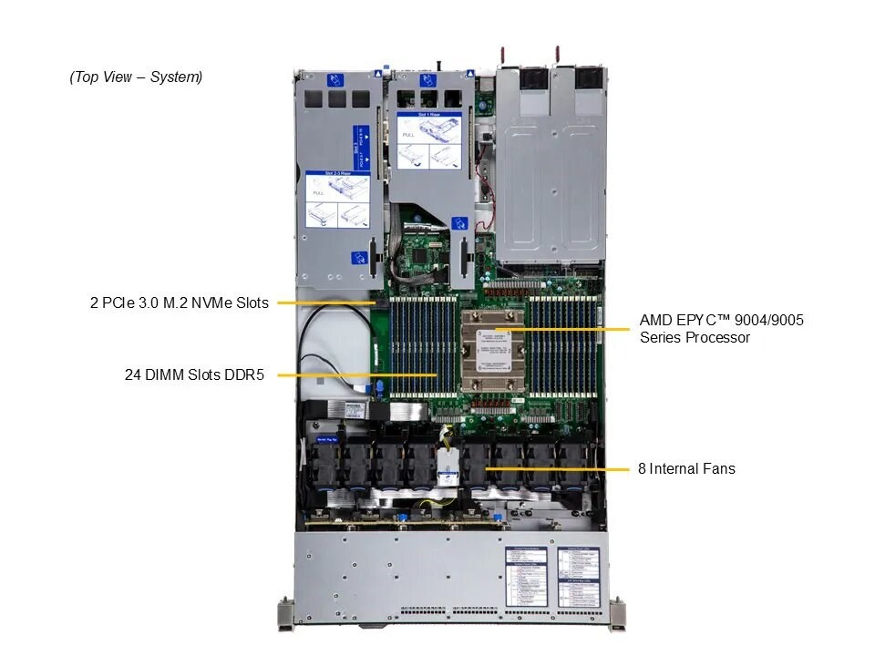 | Procesory | Až 2x AMD EPYC™ 9004/9005* Series Processors (*Podpora AMD EPYC™ 9005 vyžaduje revizi desky 2.x) |
