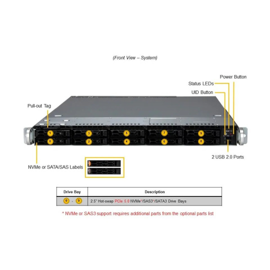 Supermicro SYS-111C-NR je výkonný 1U rackový server optimalizovaný pro databázové aplikace a podnikové výpočty. Tento systém využívá procesory Intel Xeon Scalable 4. generace a podporuje vysokorychlostní DDR5 paměť, což zajišťuje spolehlivý výkon a škálovatelnost pro širokou škálu pracovních zátěží.
