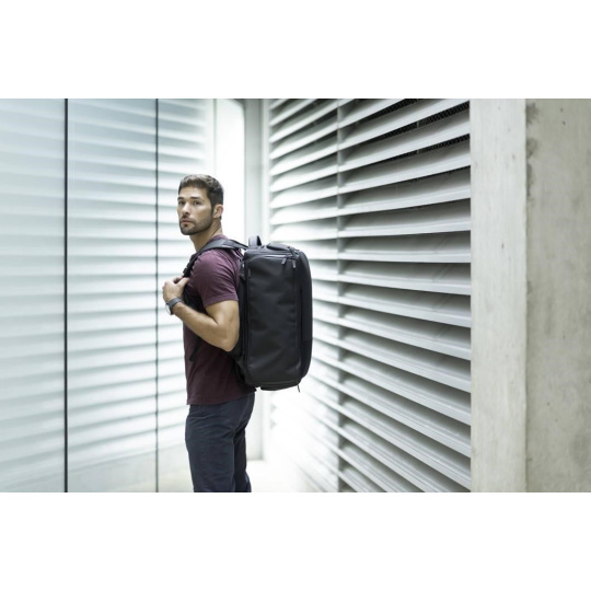 Taška se dá snadno přenášet, protože nabízí hned několik způsobů nošení. Držadlo na popruzích vám umožní držet tašku jako běžné zavazadlo. Tyto pruhy se mohou zasunout a místo toho můžete využít integrované batohové popruhy. Vyměníte-li držadlo za batoh, jedinečný design eliminuje jakékoli volně visící popruhy a zajišťuje čisté linie a nulové nebezpečí zakopnutí. Pokud tašku nesete jako batoh, lze připevnit bederní pás a vylepšit tak stabilitu, když lezete ve skalnatém terénu nebo potřebujete další zabezpečovací prvek v přelidněných centrech měst. Taška nabízí také provlékací poutko držadla, které vám umožní nasunout cestovní tašku 40L na rukojeť kufru a přes letiště ji dovézt na kolečkách, aniž byste si namáhali ramena nebo záda.