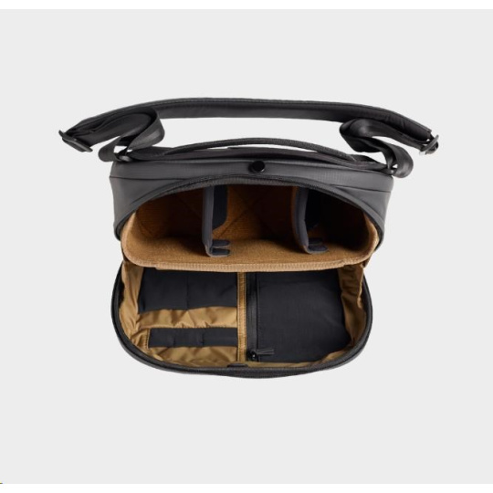 Mezi polstrovaným popruhem a otočným ramenním popruhem je extra popruh, navržen pro maximální pohodlí. Noste brašnu, jak jen vám to vyhovuje (taška přes rameno, cross body nebo popruh-sling). Zadní část popruhu má zadní panel z EVA pěny pro lepší pohodlí a proudění vzduchu. K dispozici je také kolečková verze pro zavazadlo, aby si vaše rameno při cestování odpočinulo. Na přední a spodní straně sling popruhu jsou vnější molle popruhy, pokud potřebujete mít s sebou stativ nebo bundu. BONUS: Popruh se perfektně vejde do brašny Camera Bag 35L.