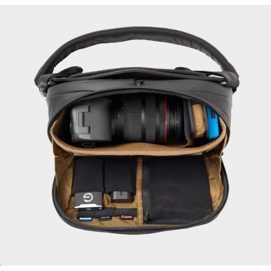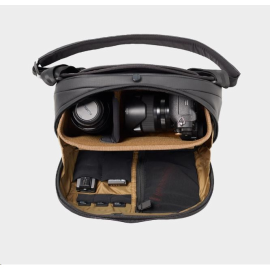 Díky stejným pevným a vodě odolným materiálům jako naše brašna McKinnon 25L, také Sling 8L má dostatek prostoru, aby se do něj pohodlně vešla bezzrcadlovka nebo malá DSLR s extra objektivem. Otvor je vyztužen pevnou, drátěnou konstrukcí pro rychlý přístup a dokonalou viditelnost. Zaujme rychloupínací systém, díky kterému bude přístup k vašemu vybavení hračkou. Na vnitřní straně dvířek je elastická síťovaná kapsa na zip a menší kapsy, vyhrazené na paměťové karty a baterie do fotoaparátu.