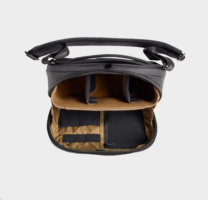 Mezi polstrovaným popruhem a otočným ramenním popruhem je extra popruh, navržen pro maximální pohodlí. Noste brašnu, jak jen vám to vyhovuje (taška přes rameno, cross body nebo popruh-sling). Zadní část popruhu má zadní panel z EVA pěny pro lepší pohodlí a proudění vzduchu. K dispozici je také kolečková verze pro zavazadlo, aby si vaše rameno při cestování odpočinulo. Na přední a spodní straně sling popruhu jsou vnější molle popruhy, pokud potřebujete mít s sebou stativ nebo bundu. BONUS: Popruh se perfektně vejde do brašny Camera Bag 35L.
