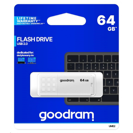 Paměť UME2 je k dispozici v kapacitě 64 GB. Použité komponenty umožňují čtení rychlostí až 20 MB/s a zápis od 5 MB/s. Stejně jako na všechny ostatní USB flash disky GOODRAM se na UME2 vztahuje doživotní záruka výrobce.