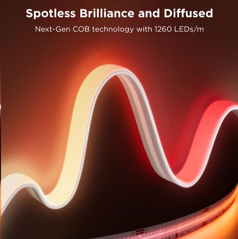 Govee Ultra Bright RGBWIC Pro je pokročilé řešení osvětlení navržené tak, aby přineslo živé a působivé osvětlení do jakéhokoli prostoru. Díky nejmodernější technologii COB (Chip on Board) a hustotě 1260 LED na metr (celkem 3780 diod), tento světelný pásek poskytuje nepřetržitý proud mimořádně jasného a hladkého osvětlení bez obvykle viditelných jednotlivých diod, což bylo typické pro běžné LED pásky. Světelný výkon je 450 lm / m a to je více než 5x tolik co běžné pásky, takže ho můžete použít i jako hlavní zdroj světla. Vytvořte elegantní, moderní atmosféru, ideální pro zvýraznění interiérového designu nebo přidání šmrncu na speciálních akcích. Govee Ultra Bright RGBWIC Pro zajišťuje maximální jas, kontrast a živé podání barev. Posuňte své osvětlení do 21. století.