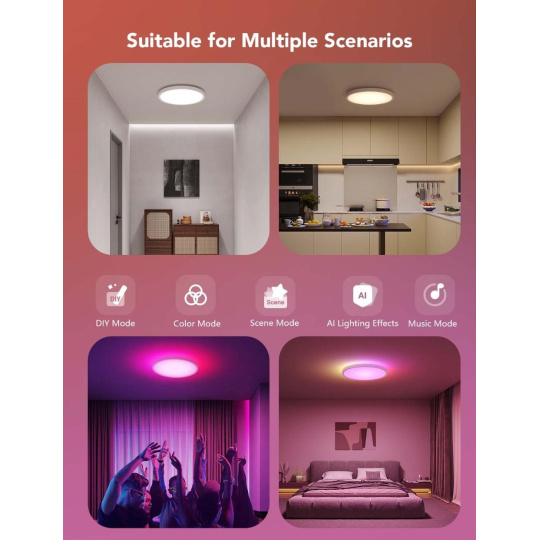 Objevte více než 70 chytrých scén pro dokonalé osvětlení vašeho prostoru! Duální stropní lampa Govee nabízí mocný DIY režim v aplikaci, který vám umožní vyrobit si osvětlení podle vlastních představ. Snadno vytvořte atmosféru, která vyhovuje každé příležitosti a stylu. S funkcí Dreamview navíc synchronizujete více svítidel Govee do stejné barvy pro parádní efekt. Oživte svůj domov s Govee!