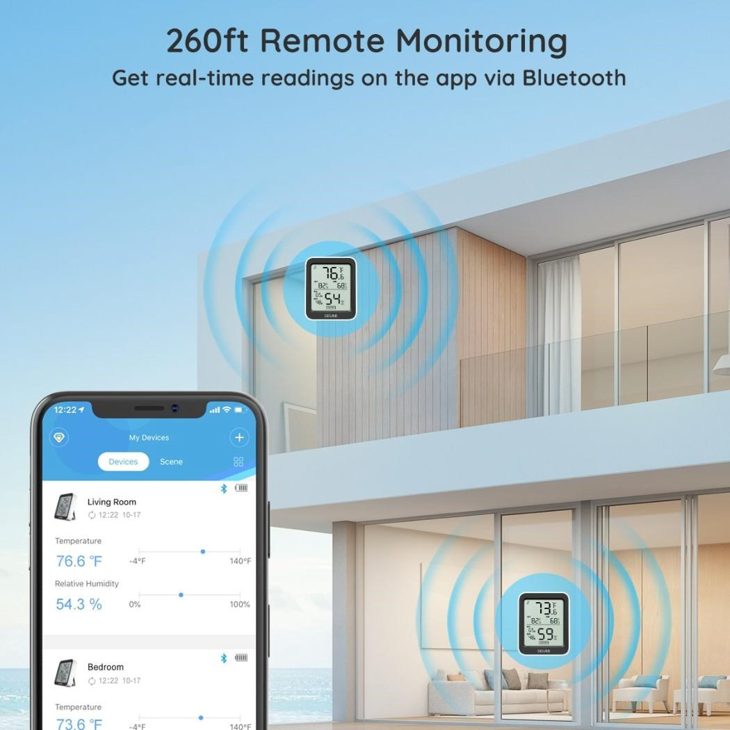 Udržujte své vnitřní prostředí pohodlné a zdravé. Chytrý monitor teploty a vlhkosti od Govee. Tento kompaktní, ale výkonný monitor klimatu zobrazuje aktuální teplotu a vlhkost na přehledném LCD displeji a díky Bluetooth připojení k telefonu máte data vždy na dosah ruky. Díky vysoce přesným senzorům (±0,3 °C pro teplotu a ±3 % RH pro vlhkost) můžete snadno sledovat změny v každé místnosti, kanceláři nebo skleníku.