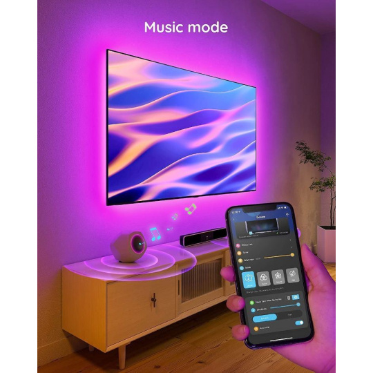 Spravujte nastavení barev a intenzity světla jednoduše pomocí aplikace Govee Home. Aplikace je zdarma ke stažení v Google Play a AppStore. Navíc získáte přístup k funkci časovače, DIY barvám, režimu videa, synchronizaci hudby a režimům scény.