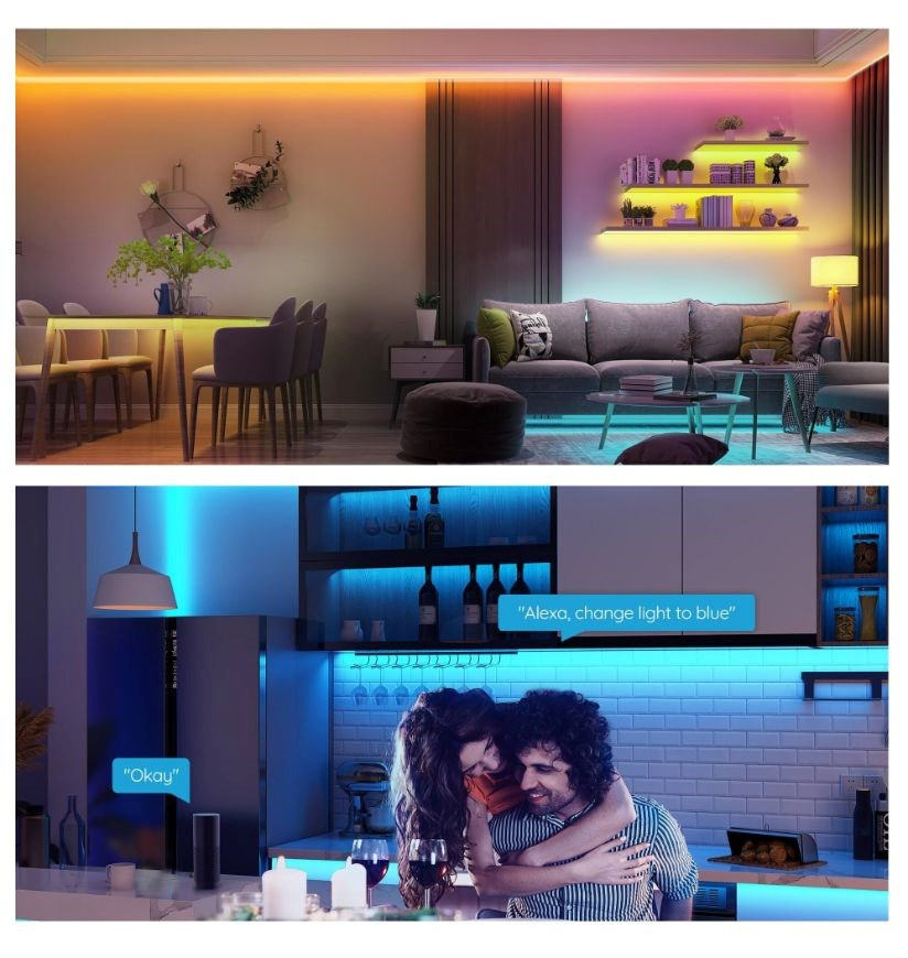 Chytré LED pásky Govee WiFi RGB SMART se instalují jednoduše nalepením 3M pásek, které jsou na zadní straně. Můžete je využít na podsvícení kuchyňské linky, podsvícení postele v ložnici nebo v dětském pokoji, oživení chodby nebo schodů a mnoho dalšího podle fantazie. LED pásky je možné zkrátit a upravit na požadovanou délku.
