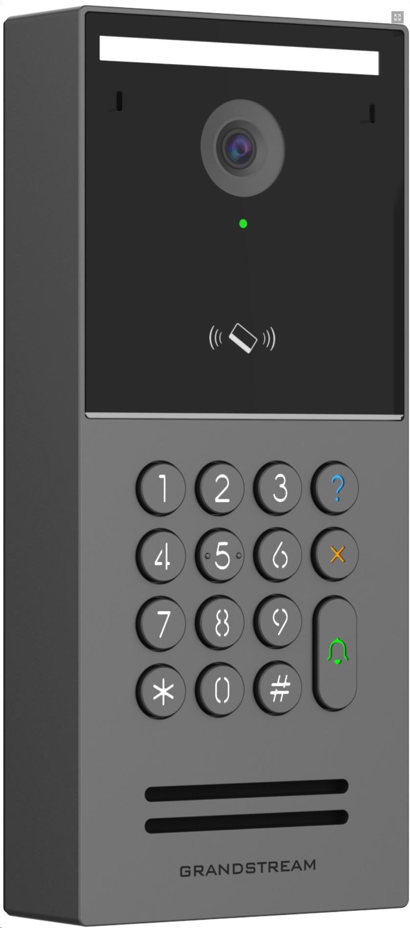 Inteligentní IP video vrátníky pro řízení přístupu, video interkomy a bezpečnostní záznamy. GDS3725/3726/3727 jsou inteligentní IP video vrátníky, které slouží také jako IP kamery s vysokým rozlišením a IP interkomy. Nabízejí tak řízení přístupu do objektů a bezpečnostní monitoring pro budovy všech velikostí. Tyto výkonné IP video vrátníky nabízejí široký pozorovací úhel 127 stupňů, inteligentní obrazový procesor AI ISP, vestavěnou čtečku IC a ID karet a NFC čip, zahrnují dva vestavěné mikrofony a jeden reproduktor pro podporu funkcí interkomu a nabízejí podporu pro vstup a výstup alarmu pro integraci se stávajícími bezpečnostními zařízeními. Integrují se s bezplatným softwarem pro správu Grandstream, GDS Manager, což umožňuje plnou správu informací o identifikačních a IC kartách, video kanálů a samotného zařízení pomocí tohoto softwaru.