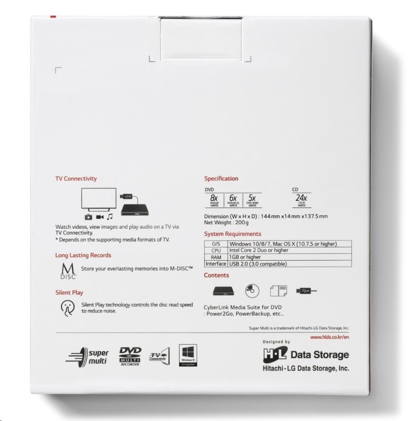 HITACHI LG - externí mechanika DVD-W/CD-RW/DVD±R/±RW/RAM GP60NS60, Slim, Silver, box+SW