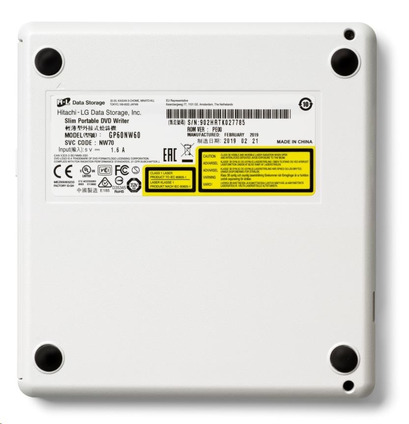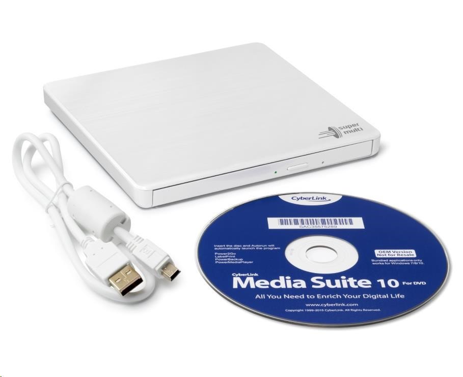 HITACHI LG - externí mechanika DVD-W/CD-RW/DVD±R/±RW/RAM GP60NW60, Slim, White, box+SW