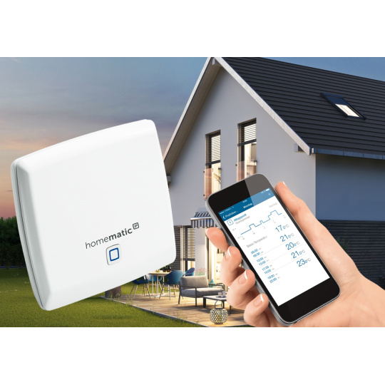 Bezdrátové propojení dílčích zařízení Homematic IP s Centrální jednotkou HmIP-HAP nabízí pohodlné nastavení a ovládání komplexního systému smart home pomocí intuitivní aplikace (pro Android a iOS v CZ) určené pro chytré telefony. Mobilní aplikace umožňuje okamžitou reakci na zprávy a upozornění ze systému vaší chytré domácnosti a spojuje všechna zařízení Homematic IP prostřednictvím bezplatného, neomezeného cloudu, ten umožňuje nastavení a řízení systému odkudkoliv na světě, přenos důležitých informací a aktualizaci softwaru a firmwaru zařízení, předává konfigurační a provozní příkazy z aplikace Homematic IP směrem k jednotlivým zařízením chytré domácnosti.
