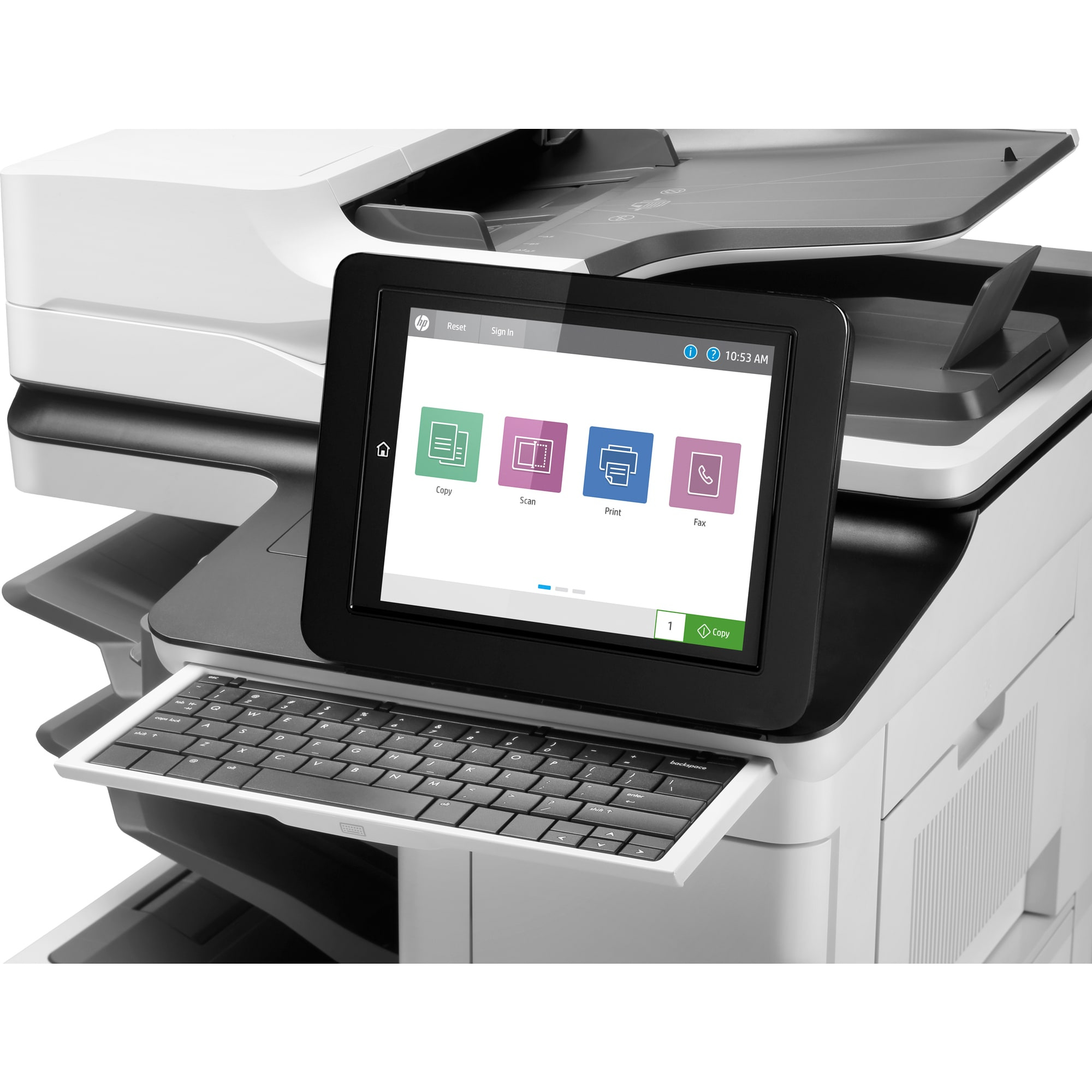 | Vstupní režimy skenování | Funkce ovládané na předním panelu: Kopírování; E-mail; Ukládání do síťové složky; Ukládání na jednotku USB; Ukládání do paměti zařízení; Ukládání do služby SharePoint; Aplikace Open Extensibility Platform (OXP); Aplikace HP Scan nebo uživatelská aplikace přes ovladač TWAIN |