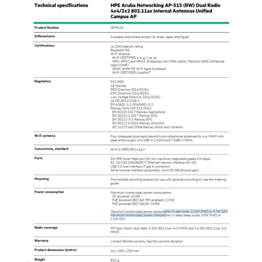 Odkaz na web výrobce: https://www.arubanetworks.com/assets/ds/DS_AP510Series.pdf