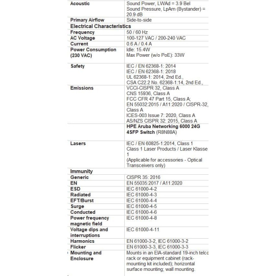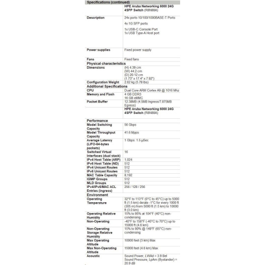 HHPE Aruba Networking CX 6000 8p 10M/100M/1G 2p SFP 1G Switch.