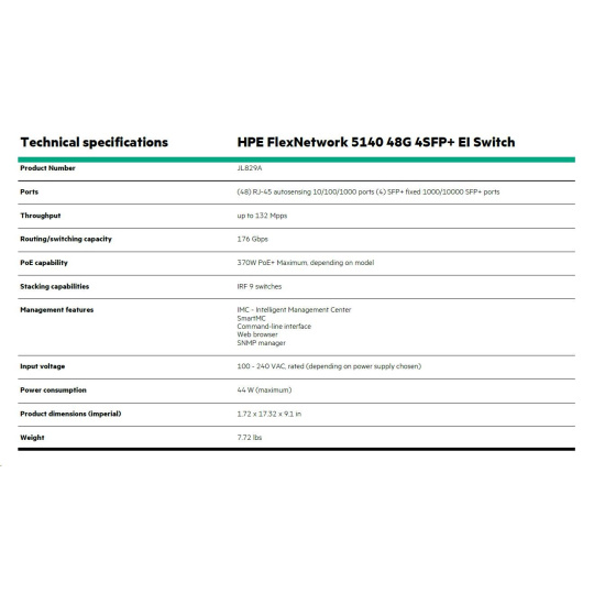 | HPE Networking Comware Switch 48G 4SFP+ EI 5140 | JL829A | |