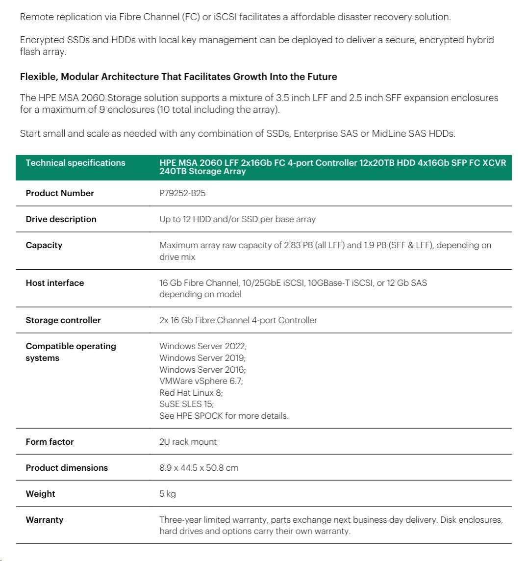 HPE MSA 2060 LFF 2x10/25GbE iSCSI Array.
