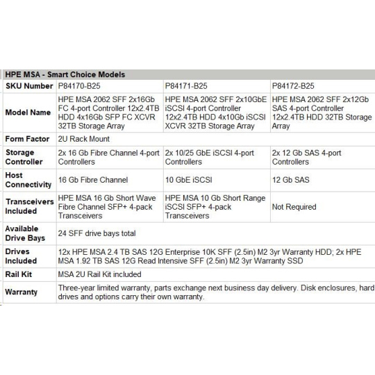 HPE MSA 2060 LFF 2x16Gb FC 4-port Controller 7x8TB HDD 4x16Gb SFP FC XCVR 56TB Storage Array Smart Choice.