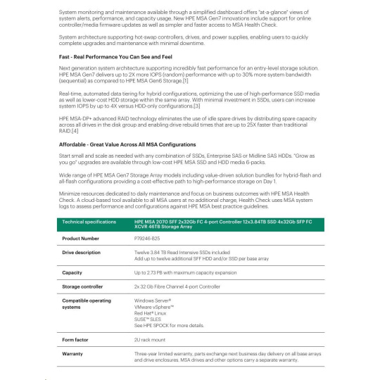HPE MSA 2070 SFF 2x32Gb FC 4-port Controller 12x3.84TB SSD 4x32Gb SFP FC XCVR 46TB Storage Array Smart Choice