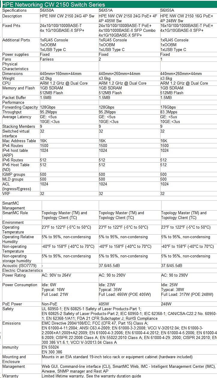 HPE Networking CW 2150 24p 10M/100M/1G 4p SFP+ 1G/10G Switch