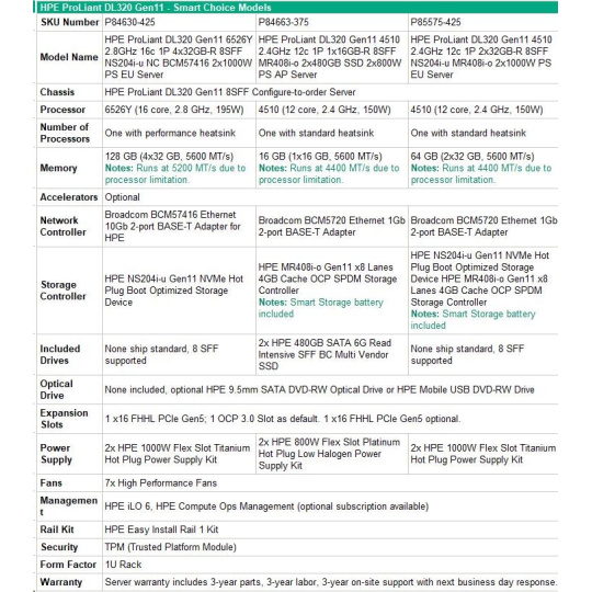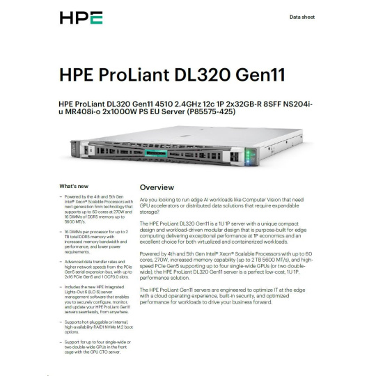 HPE PL DL320g11 4510 (2.4/12C) 2x32G (p64706) NS204(2x480) MR408i-o 8SFF 2x1000W 2p1G Smart Choice.