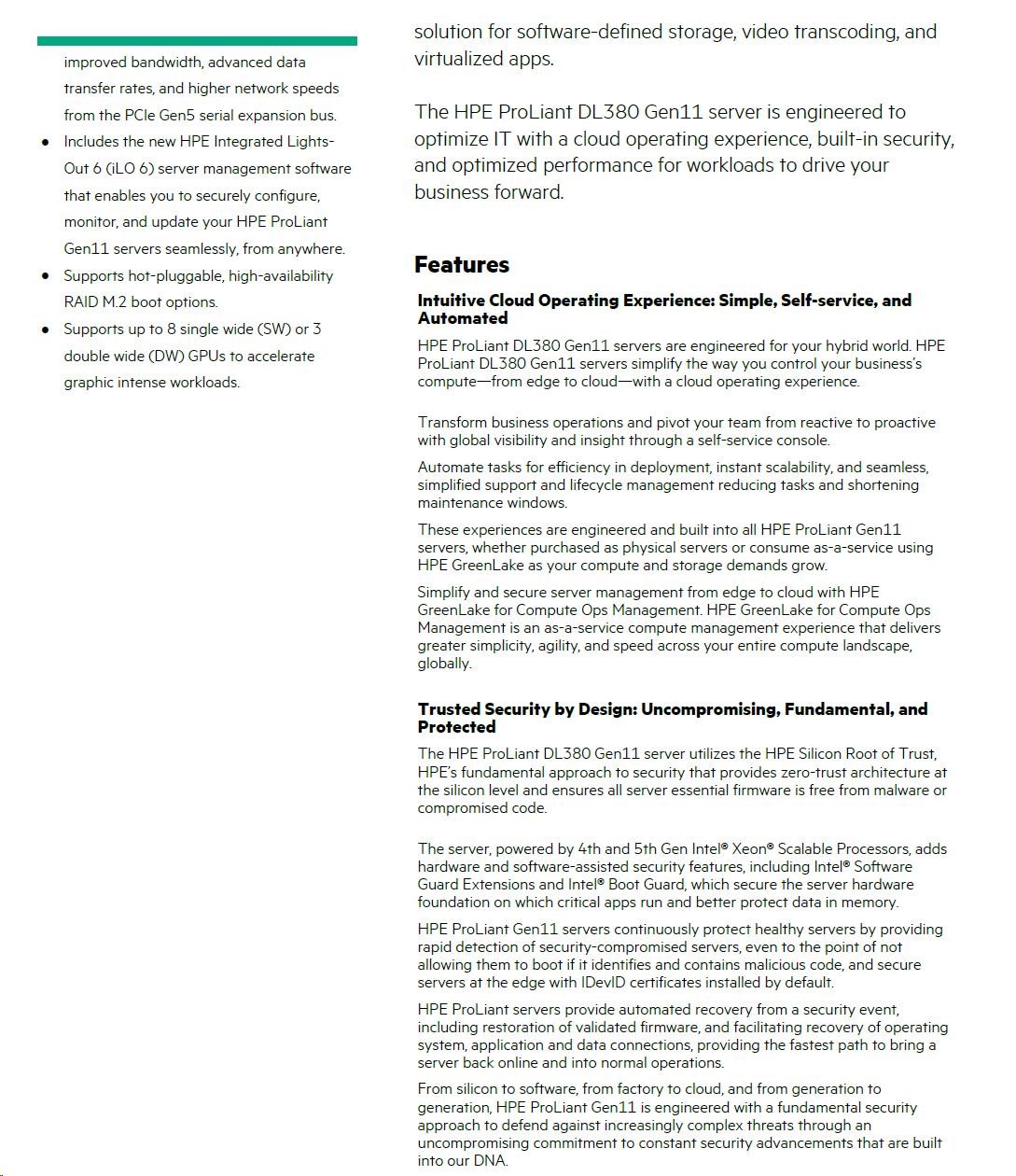 Security Trusted Platform Module (TPM) Notes: Enabling TPM 2.0 no longer requires TPM module option kit for Gen11. It is an embedded feature and can be disabled in the BIOS setting.