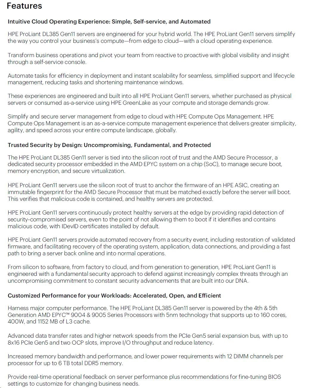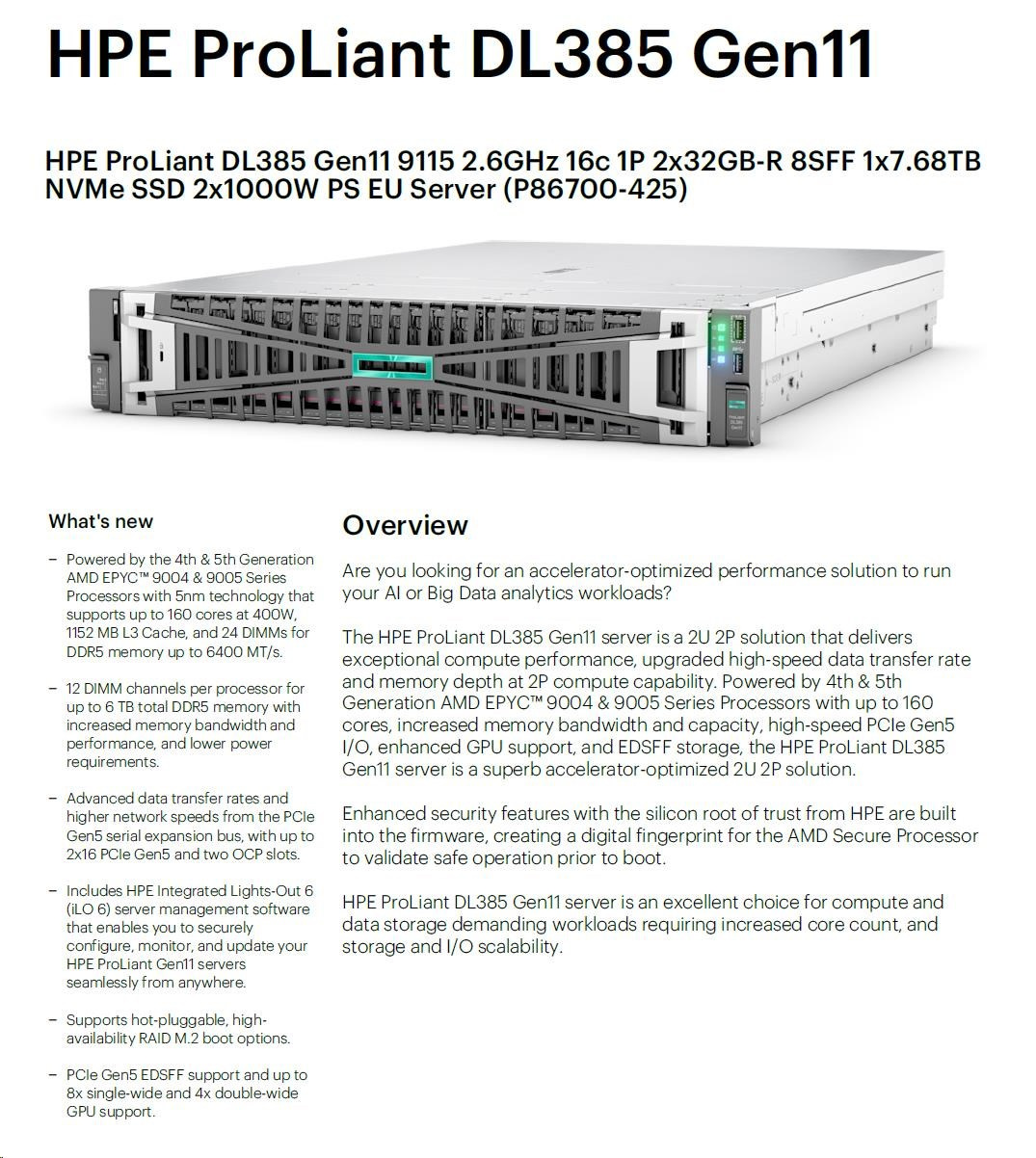 HPE PL DL385g11 AMD EPYC 9115 (2.6/16C) 2x32G (P64985) 1x7.68TB NVMe 2x1000W 8SFF 2p10GT Smart Choice.