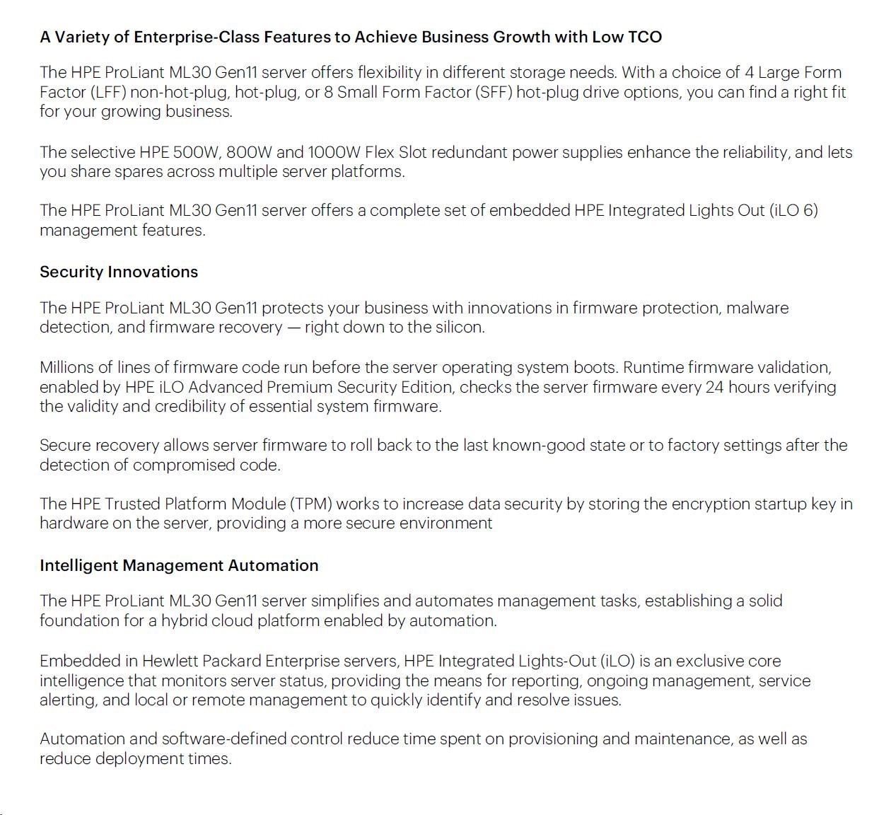 HPE PL ML30g11 6325P (3.5G/4C8T) 1x32G 2x960G SSD SATA 4LFF-HP VROC 1x1000W 4p1G NBD311 Smart Choice
