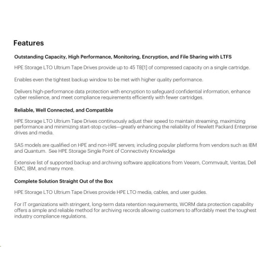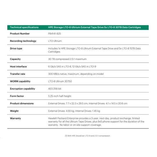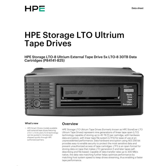 HPE Storage LTO-8 Ultrium External Tape Drive (+5x Q2078A LTO-8 30TB Data Cartridges) Smart Choice