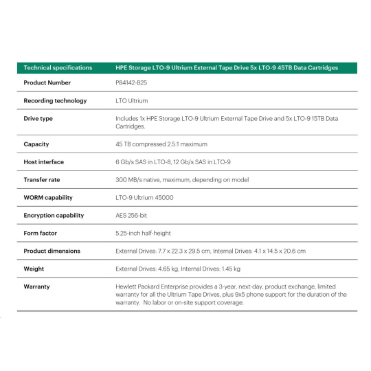 HPE Storage LTO-8 Ultrium External Tape Drive 5x LTO-8 30TB Data Cartridges.