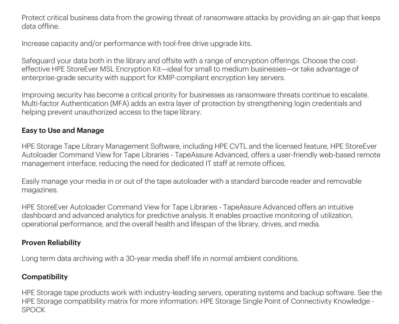 HPE Storage MSL 1/8 Tape Autoloader 1x MSL LTO-9 SAS Drive 5x LTO-9 45TB Data Cartridges.