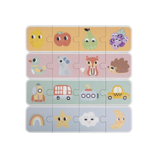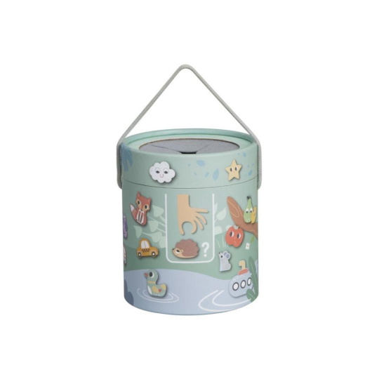 Společenská hra pro děti i celou rodinu Hmatej a najdi nabízí spoustu zábavy a možností ke hře. Hra, která dokonale potrénuje a zdokonalí motorické dovednosti, spočívá v hledání správného dřevěného předmětu v kyblíku, kdy pouze hmatem musí hráč najít požadovaný tvar. Hru můžete hrát různým způsobem a přizpůsobit ji věku i dovednostem každého hráče. Užijte si společné chvíle při hmatání a hledání zvířátek, dopravních prostředků a dalších tvarů..