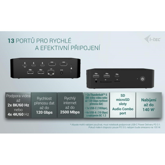 Extrémně vysoký výkon, ultrarychlý přenos dat a podpora rozlišení až 8K/60 Hz. Nejvýkonnější dokovací stanice i-tec na trhu!
