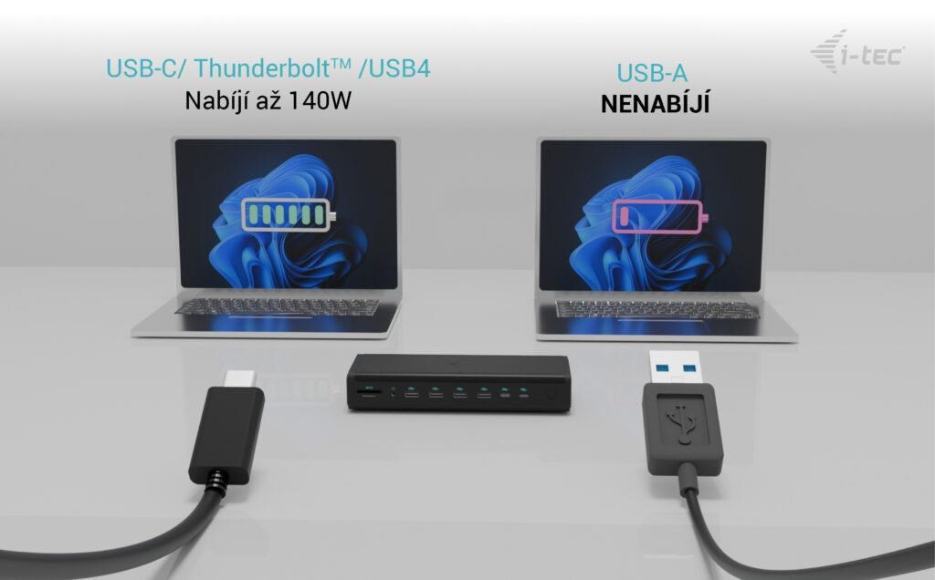 ** Pokud váš notebook nebo tablet podporuje nový a moderní nabíjecí protokol USB-A Power Delivery PD 3.1, dokovací stanice nabídne nabíjecí výkon až 140 W (pokud máte PD 3.0, nabíjecí výkon bude 100 W).