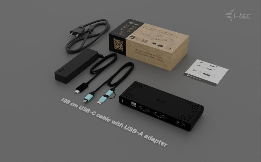 i-tec Universal Dual 4K Display Docking Station, Power Delivery 85W + i-tec USB-C Charger 100W