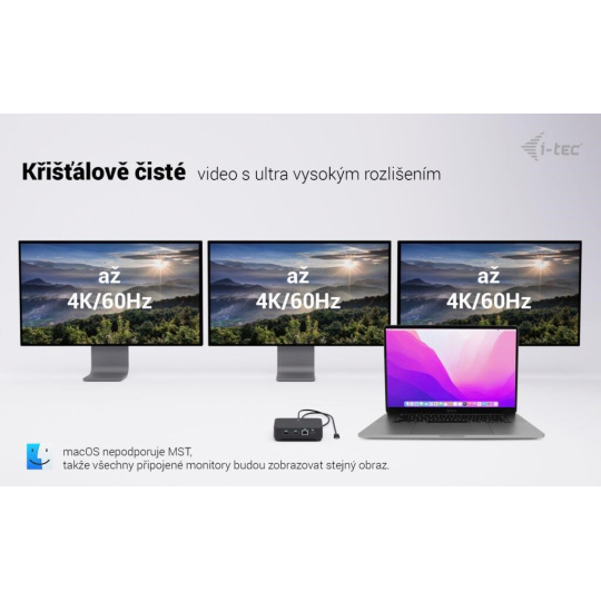 Vysoce výkonná kancelářská dokovací stanice USB-C s podporou až 3 externích monitorů s rozlišením 4K. Stanice je kompatibilní s jakýmkoli notebookem vybaveným portem USB-C, USB4 nebo Thunderbolt 3/4/5. Samozřejmostí je také možnost nabíjení notebooku či tabletu výkonem až 100 W.