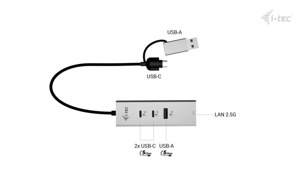 i-tec USB-C/USB-A Metal HUB 3 (2x USB-C, 1x USB-A) Port + 2.5GLAN